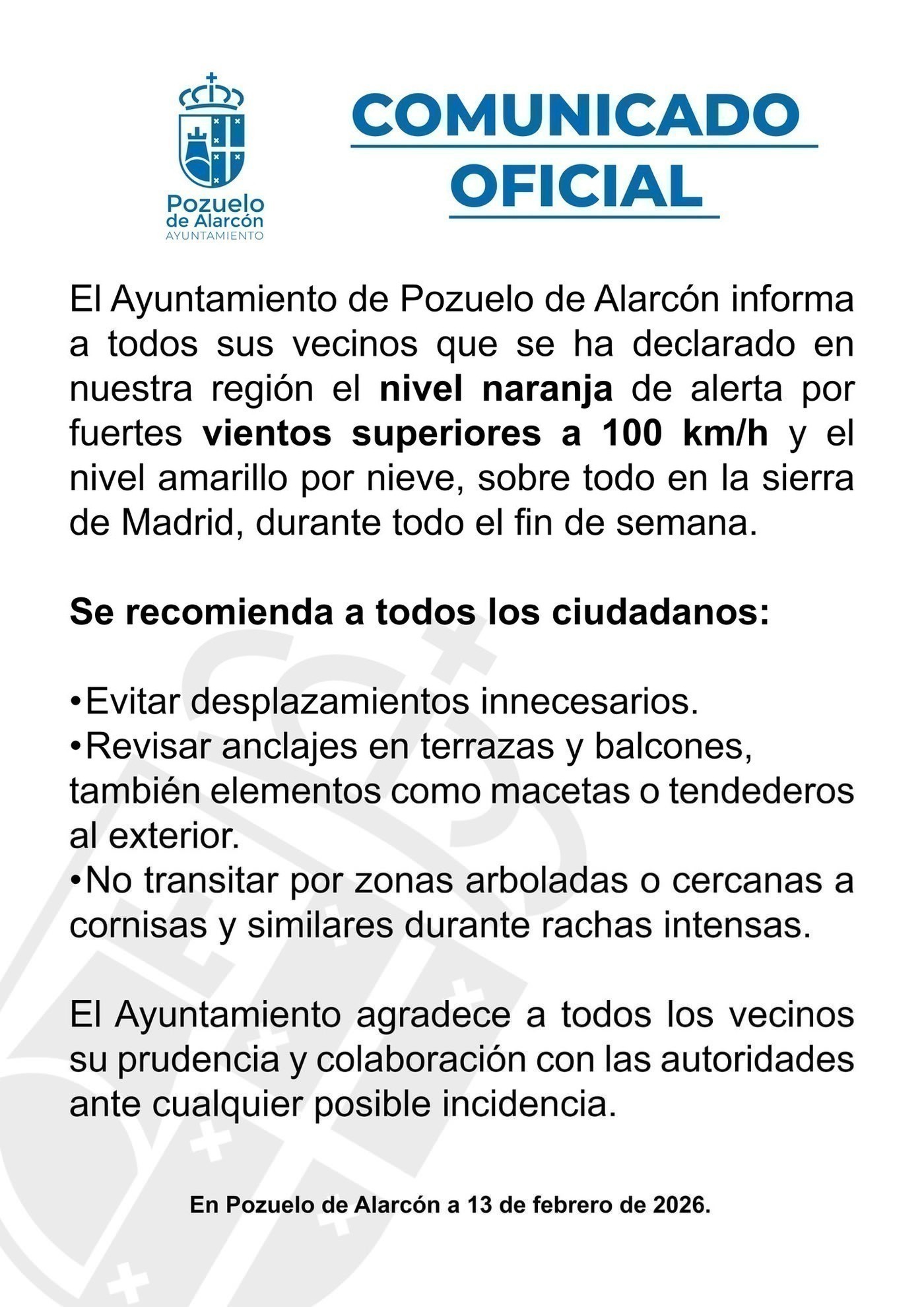 En el resto de la Comunidad de Madrid, incluido el cinturón noroeste —Pozuelo de Alarcón, Majadahonda, Boadilla del Monte, Las Rozas de Madrid o Valdemorillo— el viento será notable, aunque en niveles generalmente inferiores.