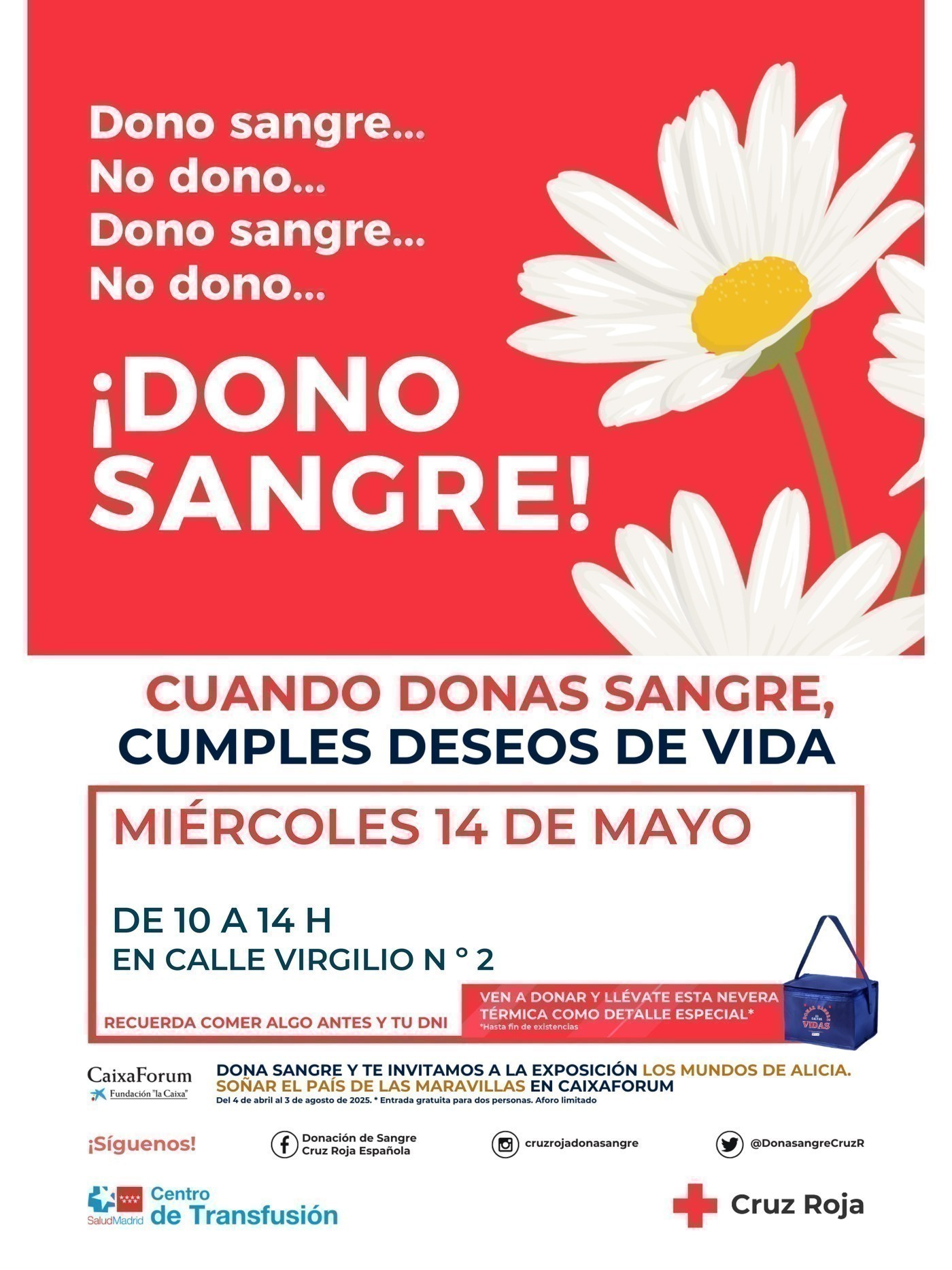 La Asamblea Local de Cruz Roja en Pozuelo de Alarcón ha organizado una nueva Campaña de Donación de Sangre que se celebrará el miércoles 14 de mayo, en horario de 10:00 a 14:00 horas, en la calle Virgilio nº 2.