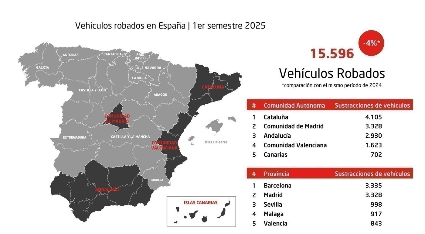 Aunque en los últimos 15 años el robo de vehículos ha caído un 50% en España, el fenómeno se está desplazando. Regiones tradicionalmente menos afectadas, como Navarra o La Rioja, han registrado repuntes significativos, lo que indica que el problema no desaparece, sino que se redistribuye.