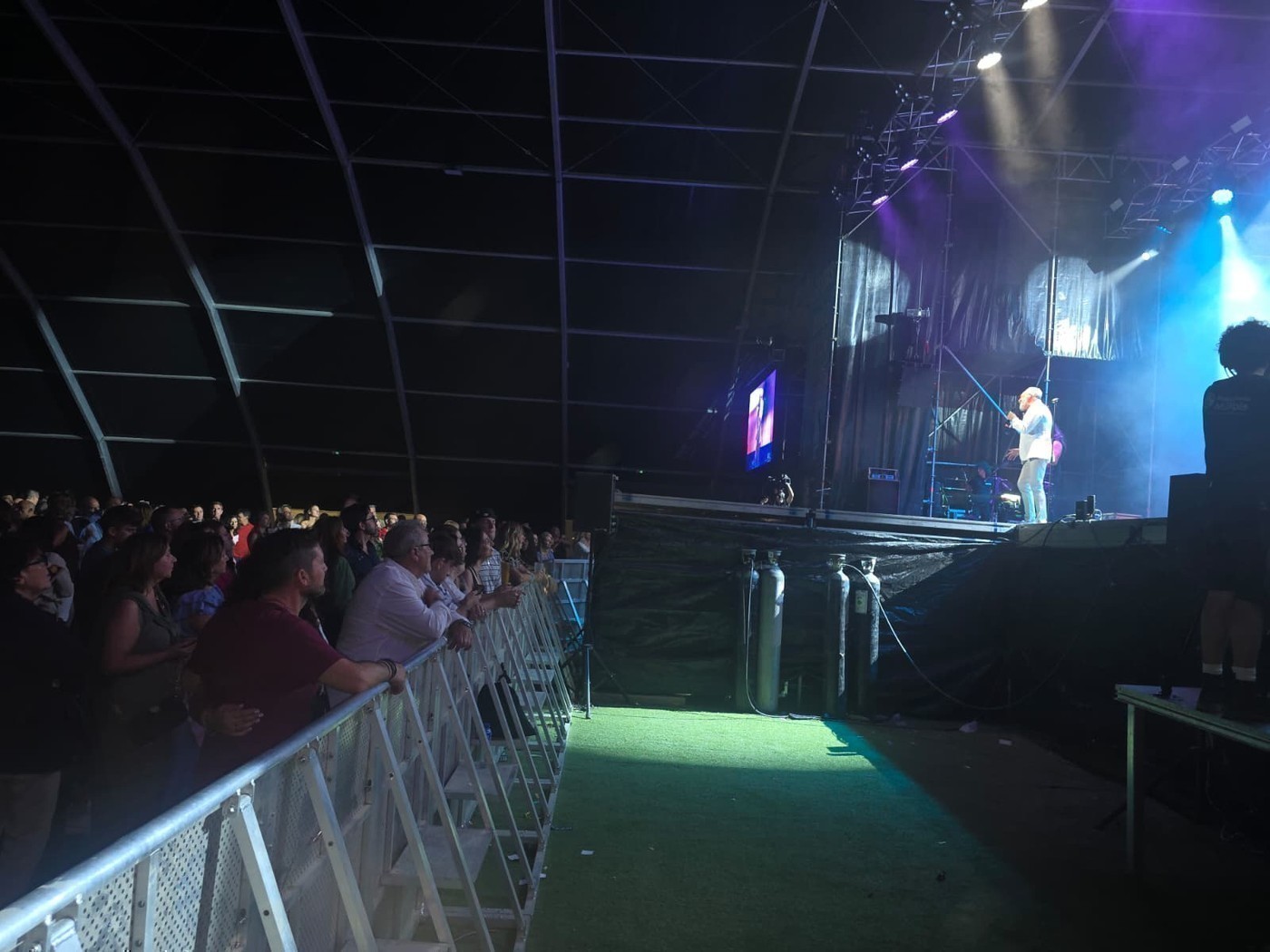 En paralelo, las fiestas seguían en la carpa instalada junto al centro comercial Zielo, con menos tumulto que en otras ocasiones y donde tuvo lugar la actuación de Rafa Sánchez, el histórico líder del grupo La Unión, que tiró de repertorio clásico para deleitar a los allí presentes, en esta ocasión, un público algo más talludito de lo que es habitual en esos lares y que disfrutaron con los clásicos temas de este grupo histórico de la Movida Madrileña.
