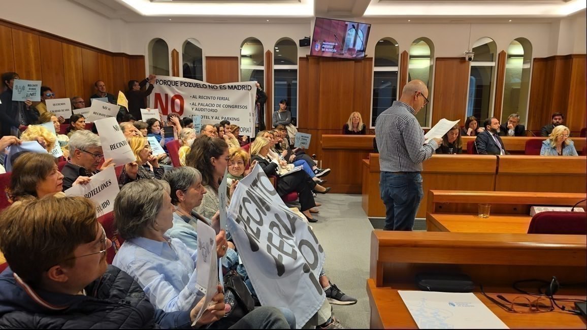 Decenas de vecinos de Pozuelo acuden hoy al pleno en el Ayuntamiento para reivindicar su rechazo al recinto ferial y al palacio de congresos.