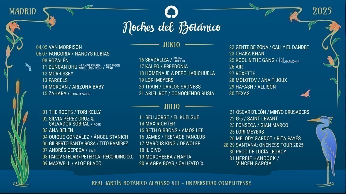 REDACCIÓN - El verano en Madrid tiene una banda sonora cada vez más consolidada: la de Noches del Botánico, que en 2025 celebra su novena edición del 4 de junio al 31 de julio en el Jardín Botánico de la Universidad Complutense. Con más de 50.000 entradas vendidas desde el anuncio del primer adelanto en diciembre, y siete conciertos agotados en tiempo récord, el festival se reafirma como una cita imprescindible para los amantes de la música en directo.