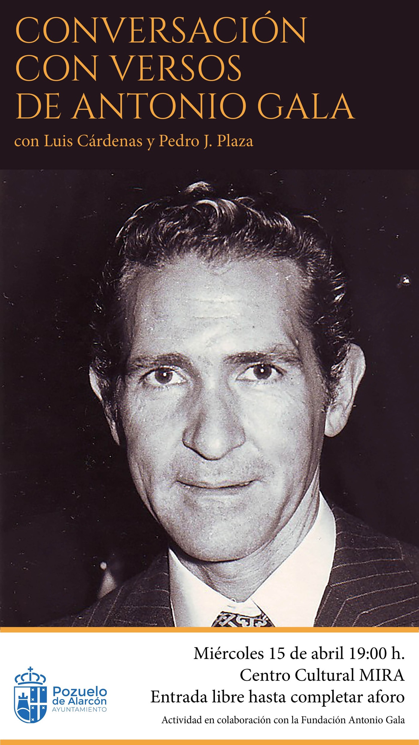 Redacción Pozuelo IN — Pozuelo de Alarcón acogerá este miércoles a las 19:00 un encuentro literario dedicado a Antonio Gala en el Centro Cultural MIRA, en una nueva cita cultural con entrada libre hasta completar aforo.
