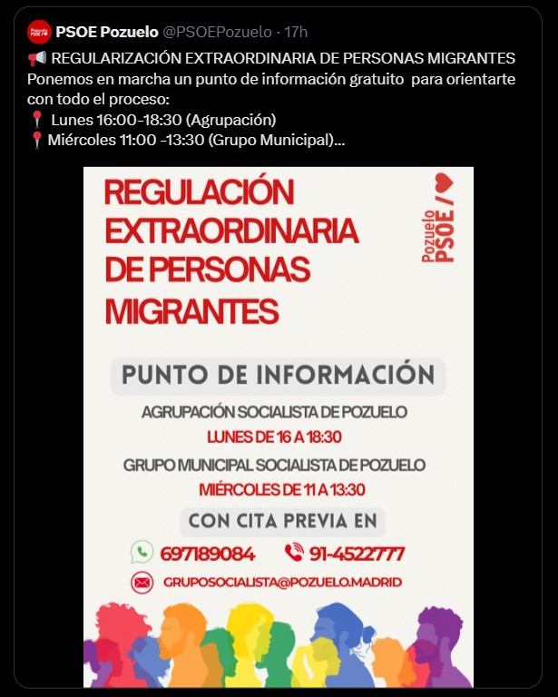 Redacción Pozuelo IN — El Ayuntamiento de Pozuelo de Alarcón ha criticado duramente al PSOE local por anunciar la atención a inmigrantes en proceso de regularización en dependencias municipales, una iniciativa que el Consistorio considera “no autorizada” y potencialmente irregular.