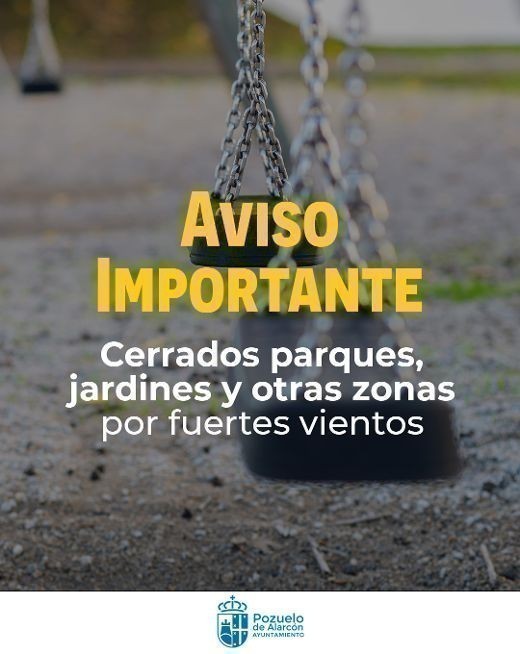 Además del cierre de parques, quedan precintadas las áreas de aparcamiento situadas en la calle Benedicto XVI y en la calle Prado de Torrejón. En aquellos parques urbanos y áreas infantiles que no cuentan con cerramiento, el Ayuntamiento ha colocado carteles informativos recomendando no transitar por ellos durante este episodio de viento.