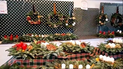• Un árbol navideño en la rotonda de la iglesia de Caná.