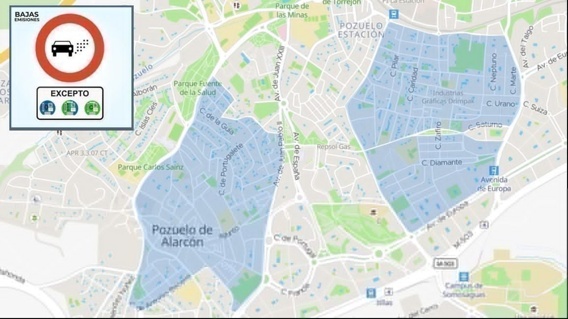 La futura ZBE de Pozuelo se pueden concentrar en tres áreas específicas del municipio.