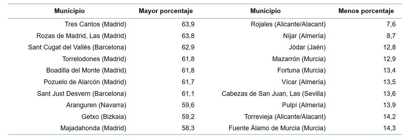 A escala nacional, los municipios del entorno madrileño vuelven a dominar la clasificación, lo que confirma la existencia de un auténtico “corredor del conocimiento” en esta franja del noroeste: una región en la que la formación académica es el estándar, no la excepción.
