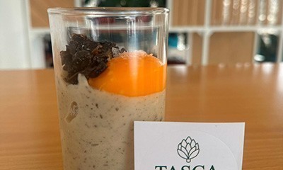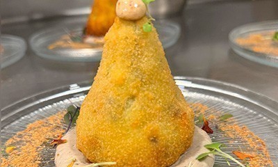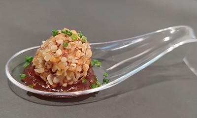 Tapa Alabardero: Esfera de foie recubierta de almendra con mermelada de higo negro