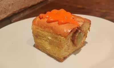 Tapa Jaén: Crujiente de sobrasada ibérica con espuma de miel y lascas de Parmigiano