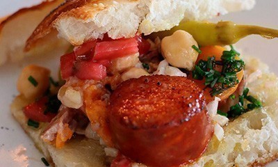 Tapa Horno Bola: Foccacia de cocido madrileño & pico de gallo