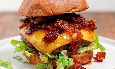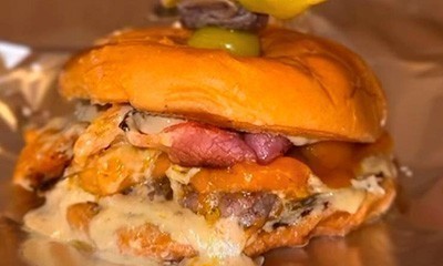 Tapa Gancho & Directo: Mini Hamburguesita de buey con boletus, cebolla caramelizada, boletus y bacon y Hamburguesita de ternera con queso parmesano y rúcula