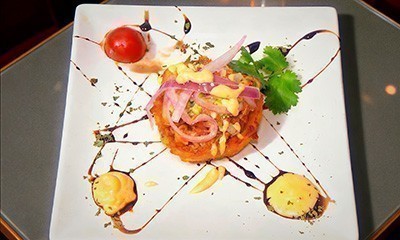 Tapa La Roteña: Lasaña crujiente de marisco y pasta wonton