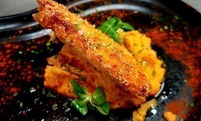 Tapa Entretrés: Cachopín de cerdo con revolcona