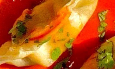 Tapa Va & Ven: Gyoza de langostino con salsa marinera y toque de arcal y cilantro