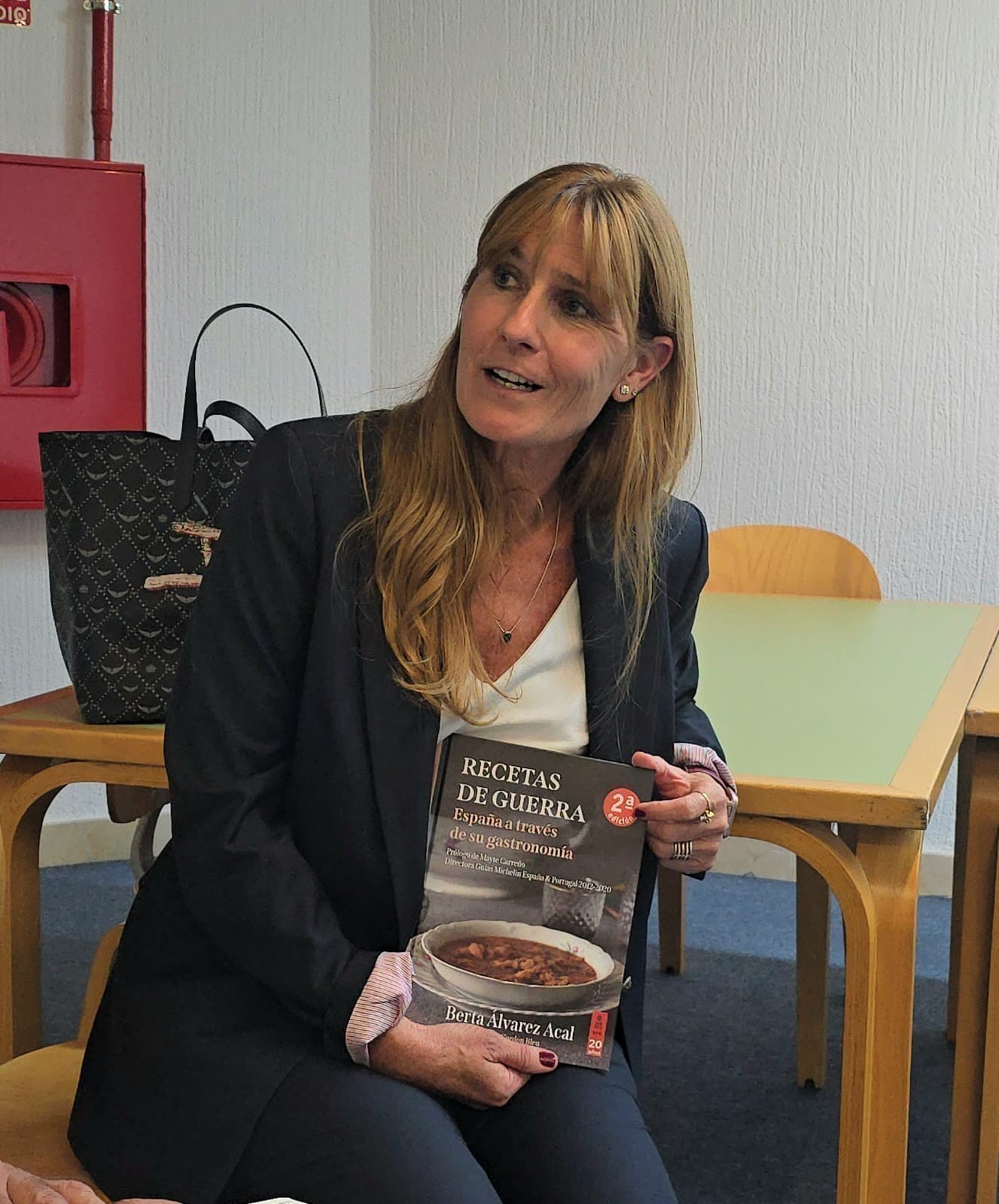 Por Germán Pose / Fotos: Carmen Millán - Berta Álvarez (Madrid, 1969), periodista, escritora, cocinara de postín y vecina de Pozuelo de Alarcón acaba de publicar el libro “Recetas de guerra” (Ed. Kailos), un relato crudo y real, en clave culinaria, auténtica memoria histórica de una época dura de la historia de España, desde los inicios de la II República hasta el final de la posguerra. Una obra en la que se relata la forma ingeniosa y corajuda de aquella generación que esquivó el hambre y la miseria. Pozuelo IN asistió a la presentación del libro y tiró de la lengua a la escritora.