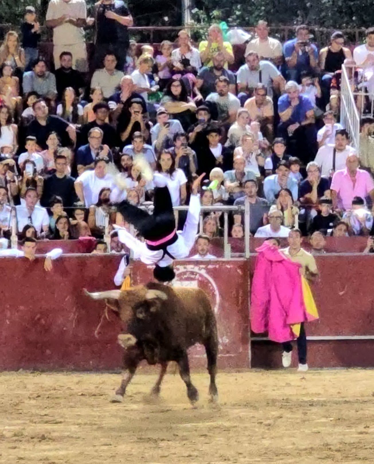 Y al caer la tarde se celebró el concurso de recortes que cada vez va teniendo más trascendencia en todos los rincones taurinos de España. En Pozuelo se presentaron 16 virtuosos y valientes ante un coso lleno a rebosar. Loas novillos toros eran dos de Zalduendo y tres de Ignacio Frías. Todos bien presentados y que dieron juego del bueno, no como los que se lidiaron en la infame corrida de algún día atrás, y que hicieron sudar a los jóvenes concursantes que vinieron de diferentes lugares de Madrid y provincias limítrofes. Fue una tarde emocionante y entretenida en la que los recortadores lo dieron todo con sus artes de recortes inspirados, artísticos y arriesgados. Mortales, tirabuzones y quiebros de alto calibre se combinaron en un concurso de mérito.