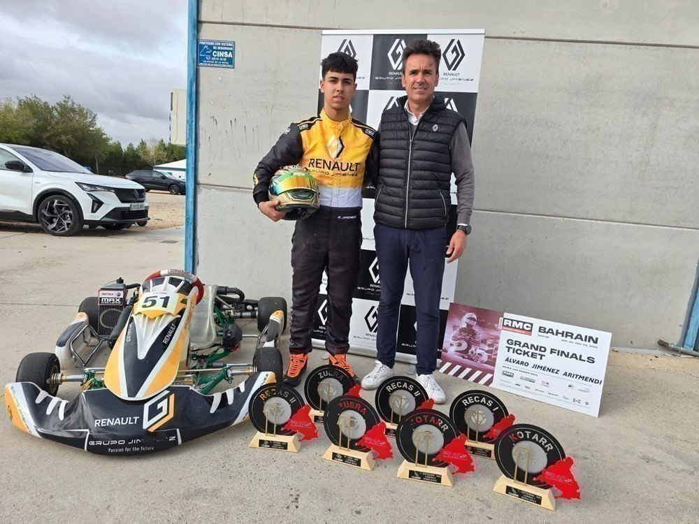 Álvaro Jiménez (Pozuelo de Alarcón, 2010) es toda una figura nacional del karting y tres veces Campeón de España. Se subió por primera vez a un kart a los 7 años y a finales de mes, con 15, competirá en el Mundial de Bharein junto a otros 475 pilotos más de todo el mundo. Gracias a las enseñanzas de su padre, expiloto, su formación es excelente y su gran ilusión es subirse a un Fórmula 1
